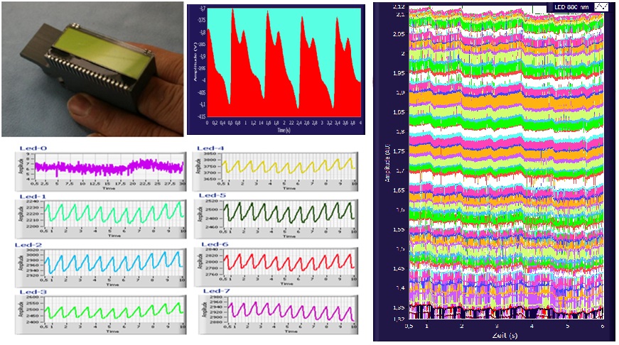 • At least one Pulshemometer (PHM) is used and measures the fractional oxygen saturation as well as hemoglobin concentration. Photoplethysmogram (PPG) is applied for further diagnosis purposes.